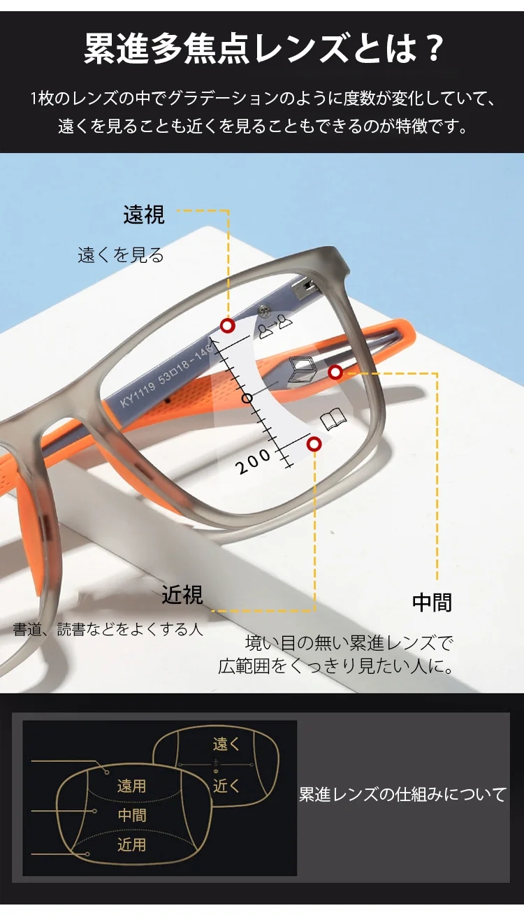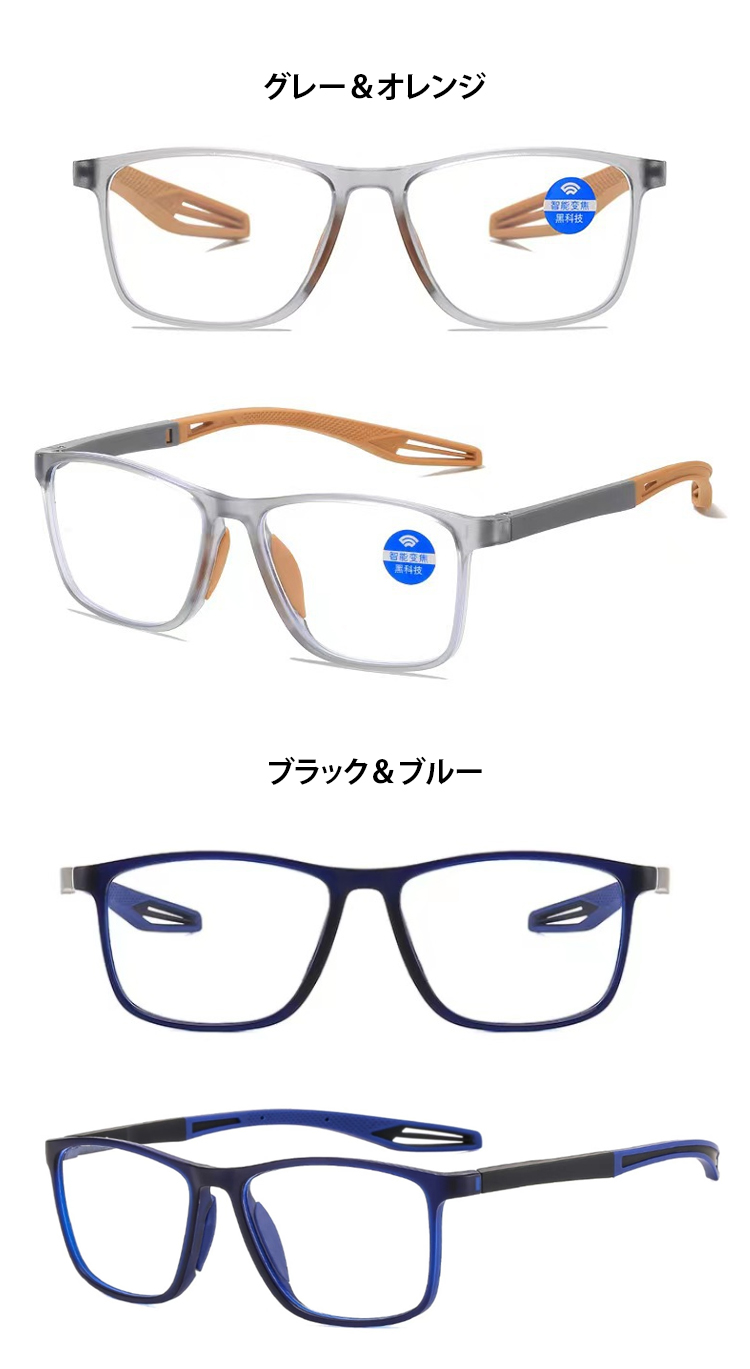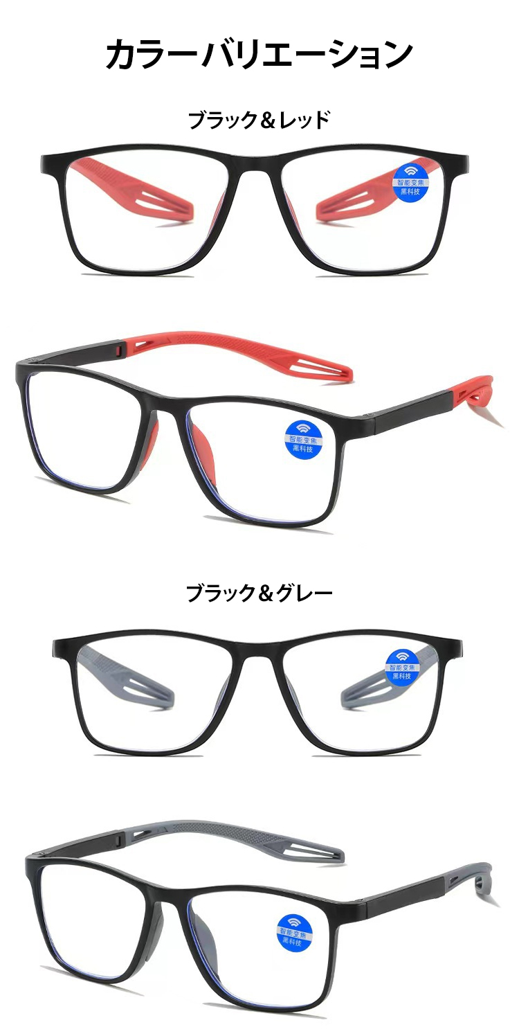 【視力検査不要、一生交換不要、-4.0°~+7.0°まで自動調節】遠近両用スポーツメガネ