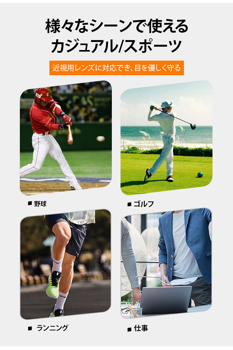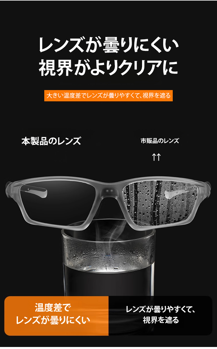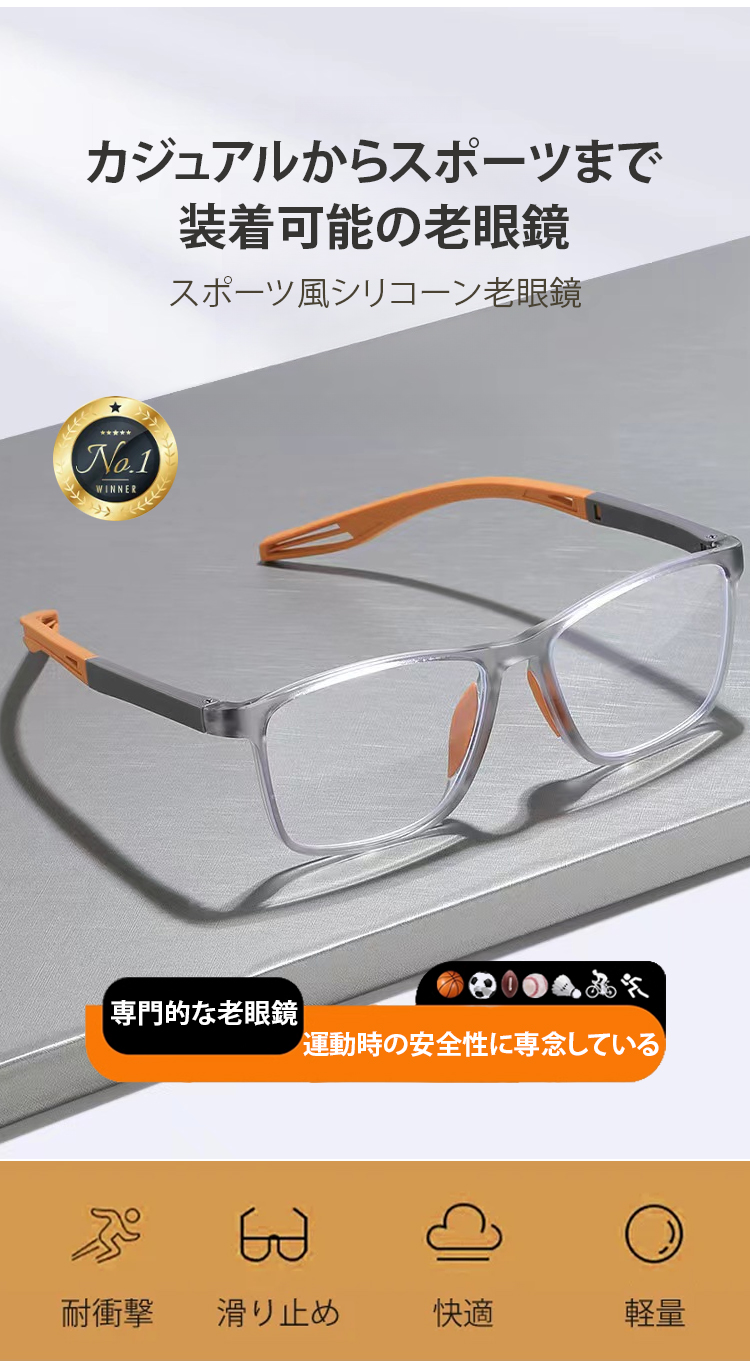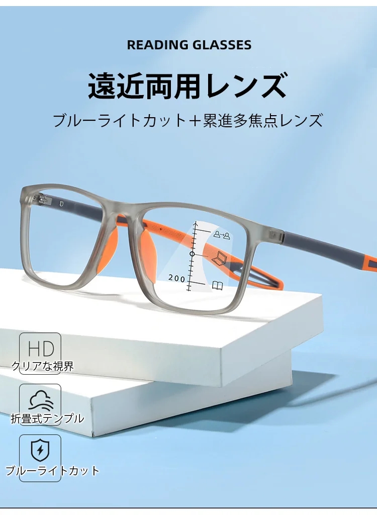 【視力検査不要、一生交換不要、-4.0°~+7.0°まで自動調節】遠近両用スポーツメガネ