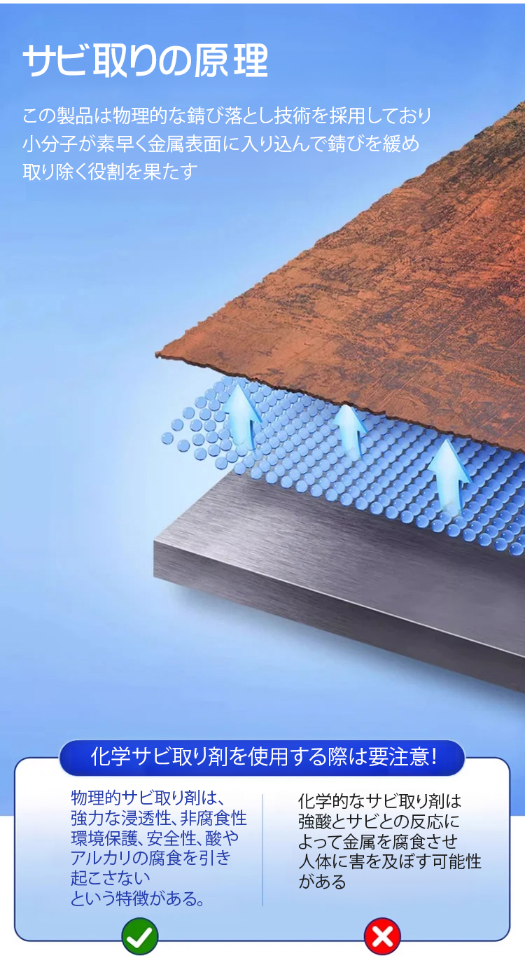 超強力な鋼鉄防錆剤は、錆を除去するだけでなく汚れも取り除き、金属の光沢と輝きを回復させます!