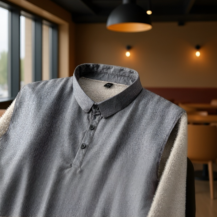ラウンドネック、ベルベット素材の厚手暖かいフェイクツーピースシャツカラーセーター
