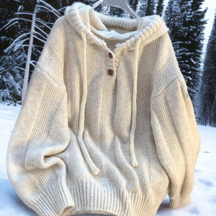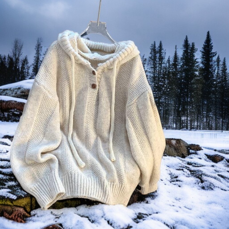● ゆったりとしたシルエットで、体型を選ばず誰でも快適に着用できるフード付きセーターです。