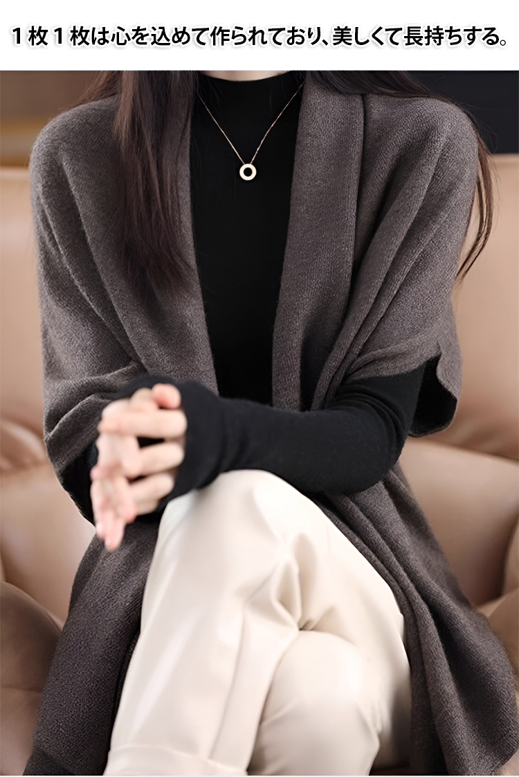 【破格のチャンス】ストール風カーディガン、周囲が羨む上品さ、完璧な着痩せ、2枚目はたったの2,000円!